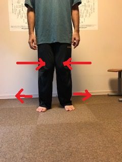↑ 足の向きより膝が内に入っている状態であれば、それが股関節の内旋状態であることが多いです。