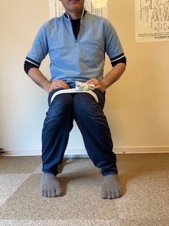 ↑当所では膝が離れないように膝上を紐で結ぶことを推奨しています。