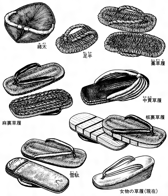 半わらじとは、足中(あしなか)と言われる土踏まずのあたりまでしかないわらじの事です。 コトバンク出典