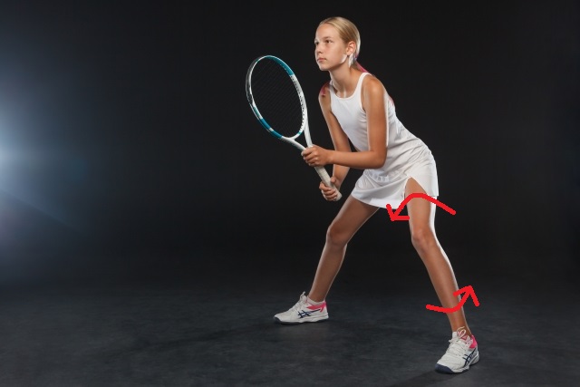 ↑この写真の方は、ほとんど脚をねじらずに構えてますが、ご自分はどうでしょうか?テニス、バスケ、サッカースピードが必要な競技では、この捻じれを使ってしまう事が多いのです。