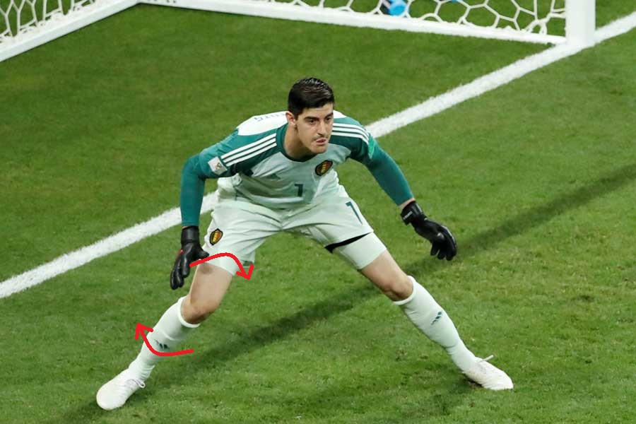 ↑ベルギーの守護神クルトワ選手ですが、右脚をかなりねじってますね。プロ選手などはきちんとしたトレーニングやトレーナーさんのケアーなどを受けていらっしゃるから大丈夫でも、なかなか一般の私たちは自分で気を付けていないと膝を痛めることも有ります。