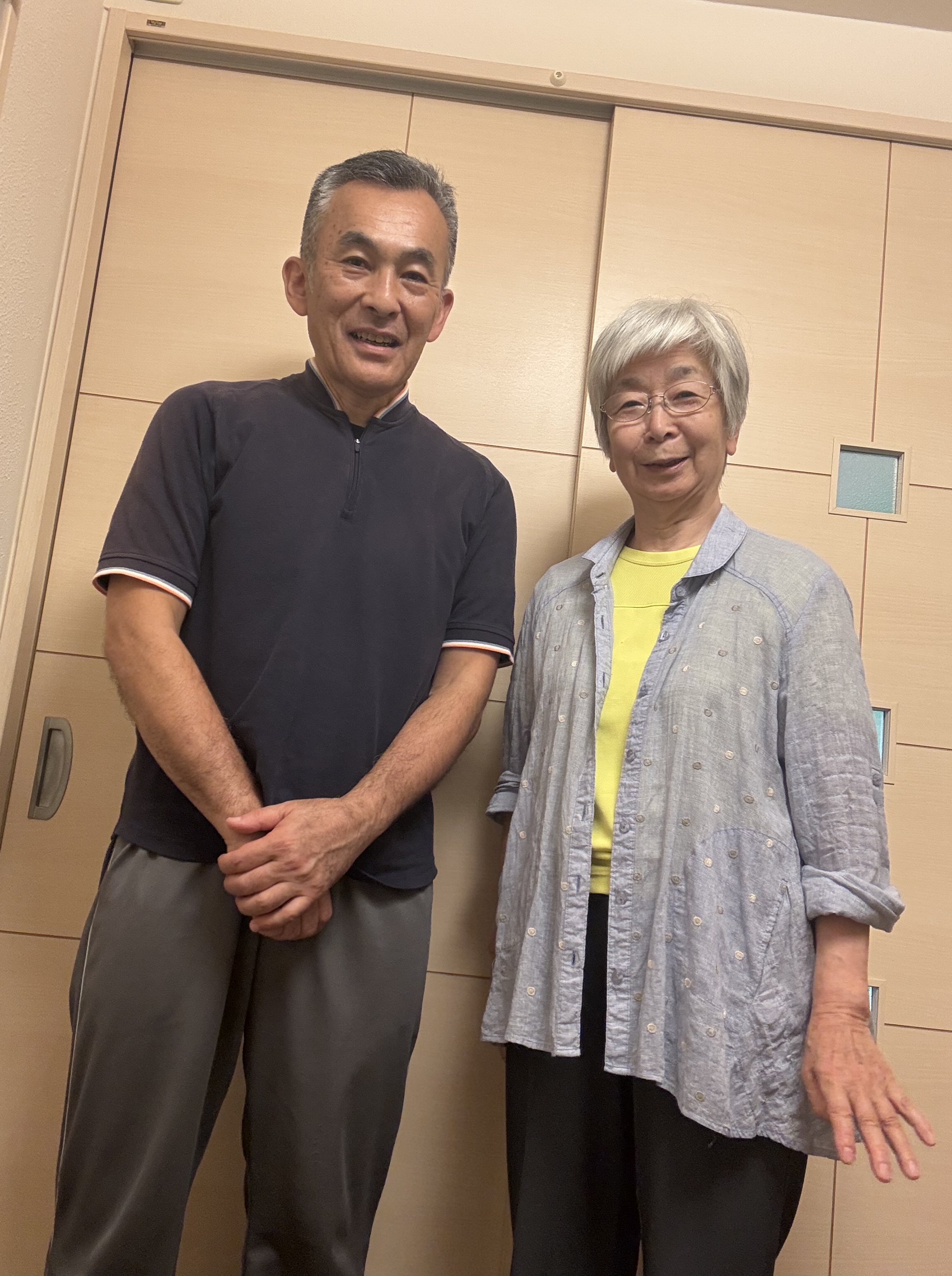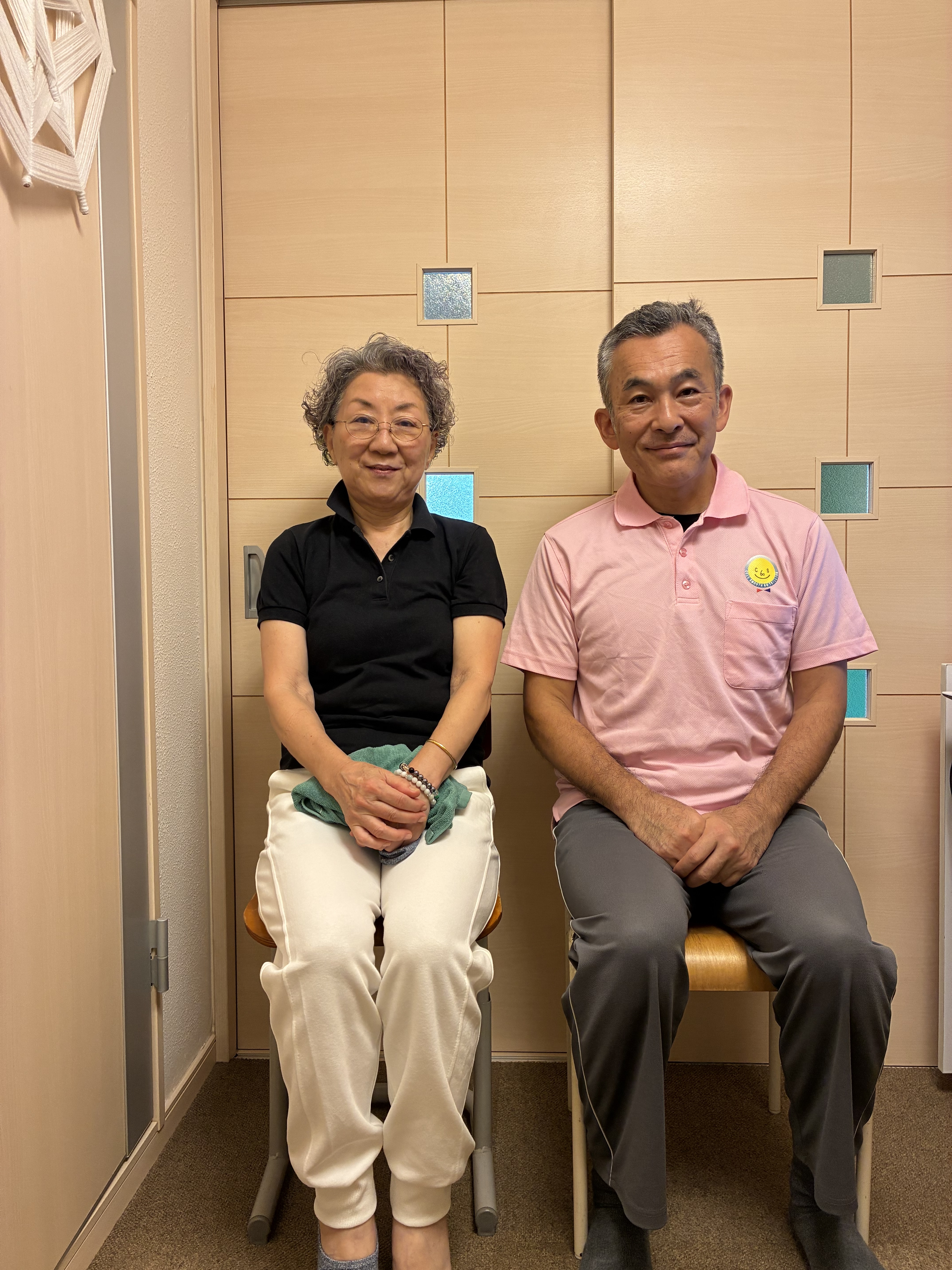 良くなられて本当に良かったですね。初めて来られた時はすぐご近所なのにお姉さまに車で送迎していただく状態で寝ても起きても痛いというぐらいでしたから、矯正で痛いとは人聞き悪い(笑)上半身が45度ぐらい左に曲がっている様態でしたから元に戻るまで時間がかかりましたが、ご本人の頑張りでお体もまっすぐに戻り痛みも消えました。これからもご自分の健康のためですから自宅矯正法など健康法としてお続けくださいね。