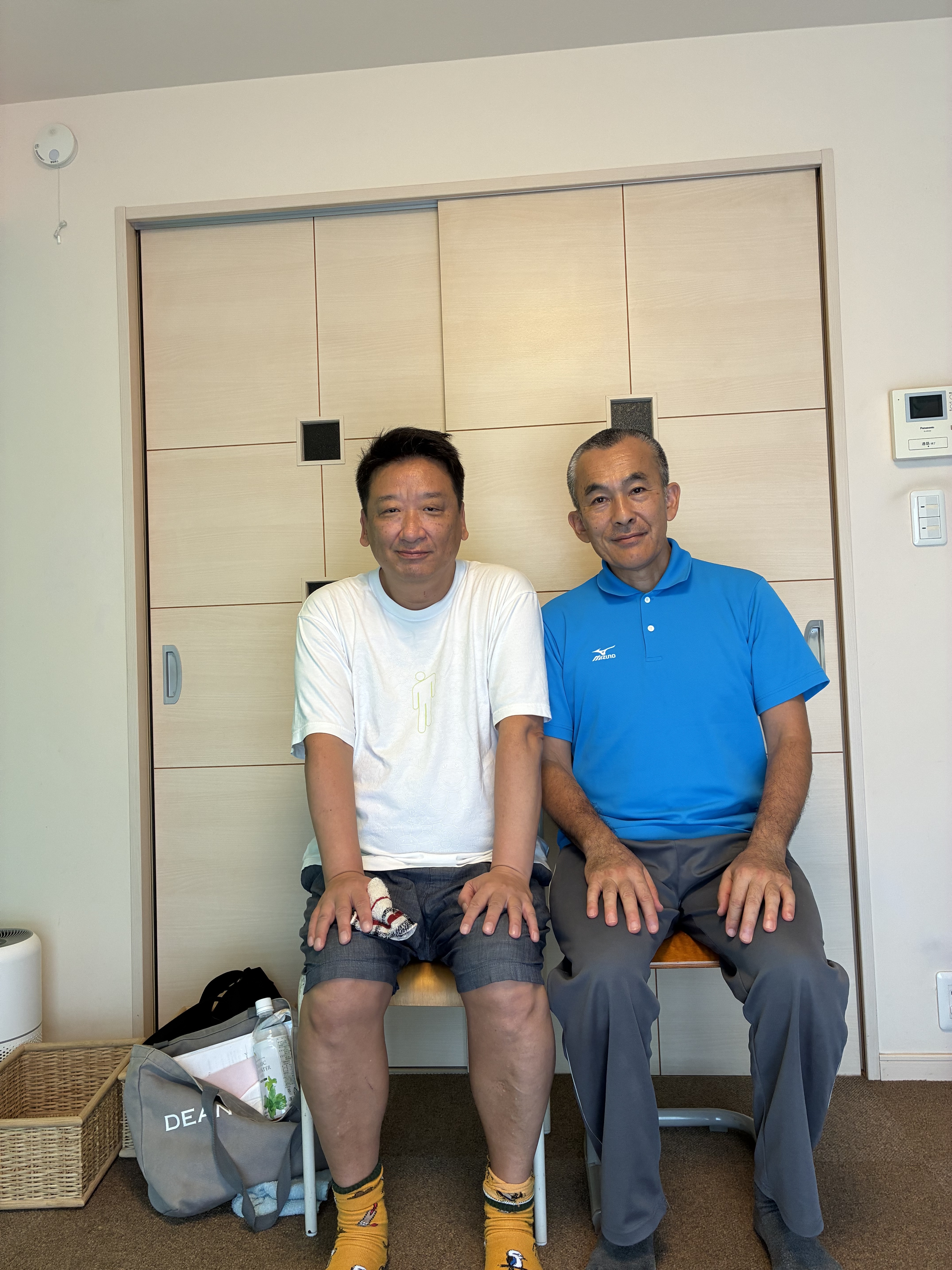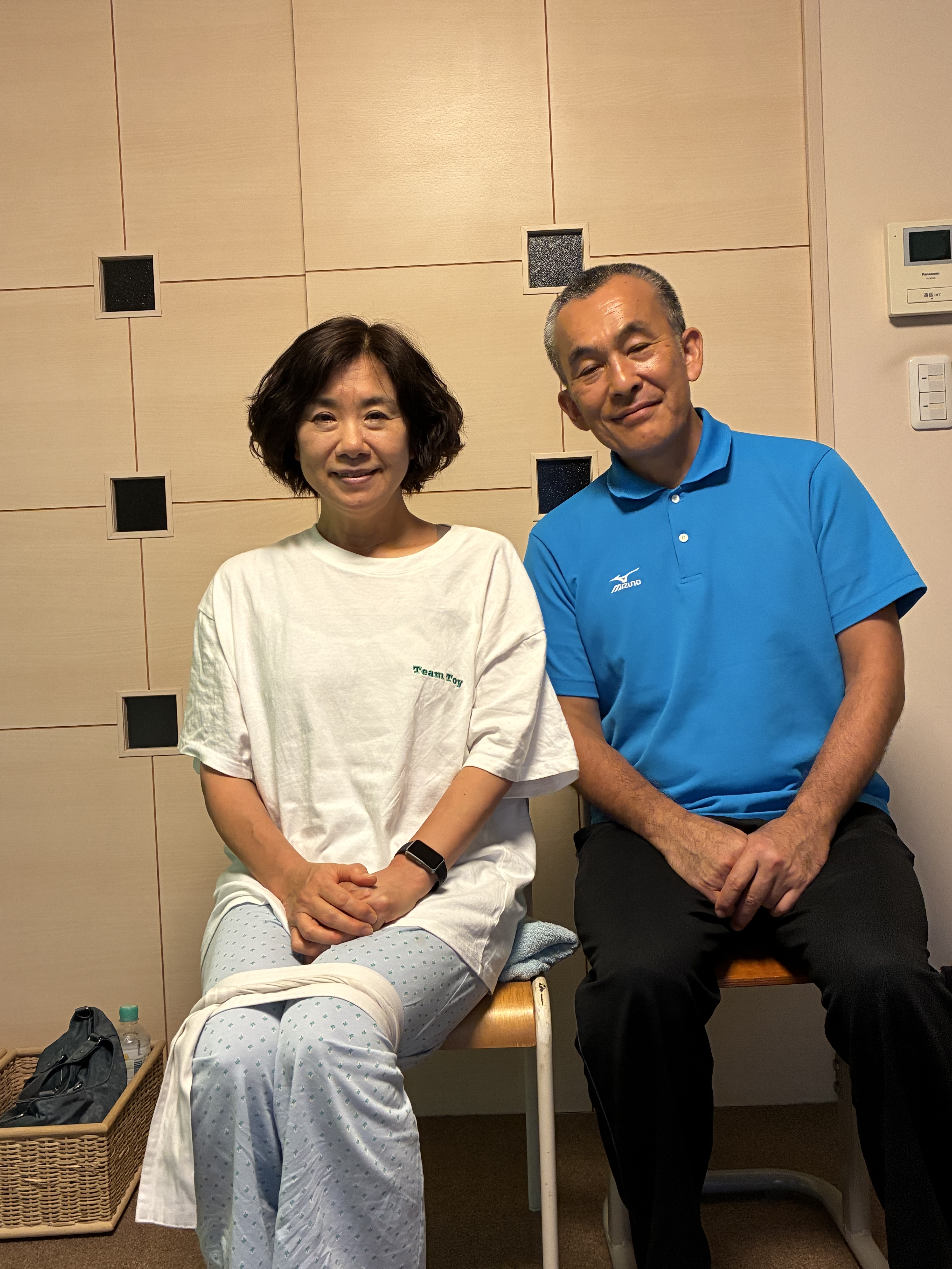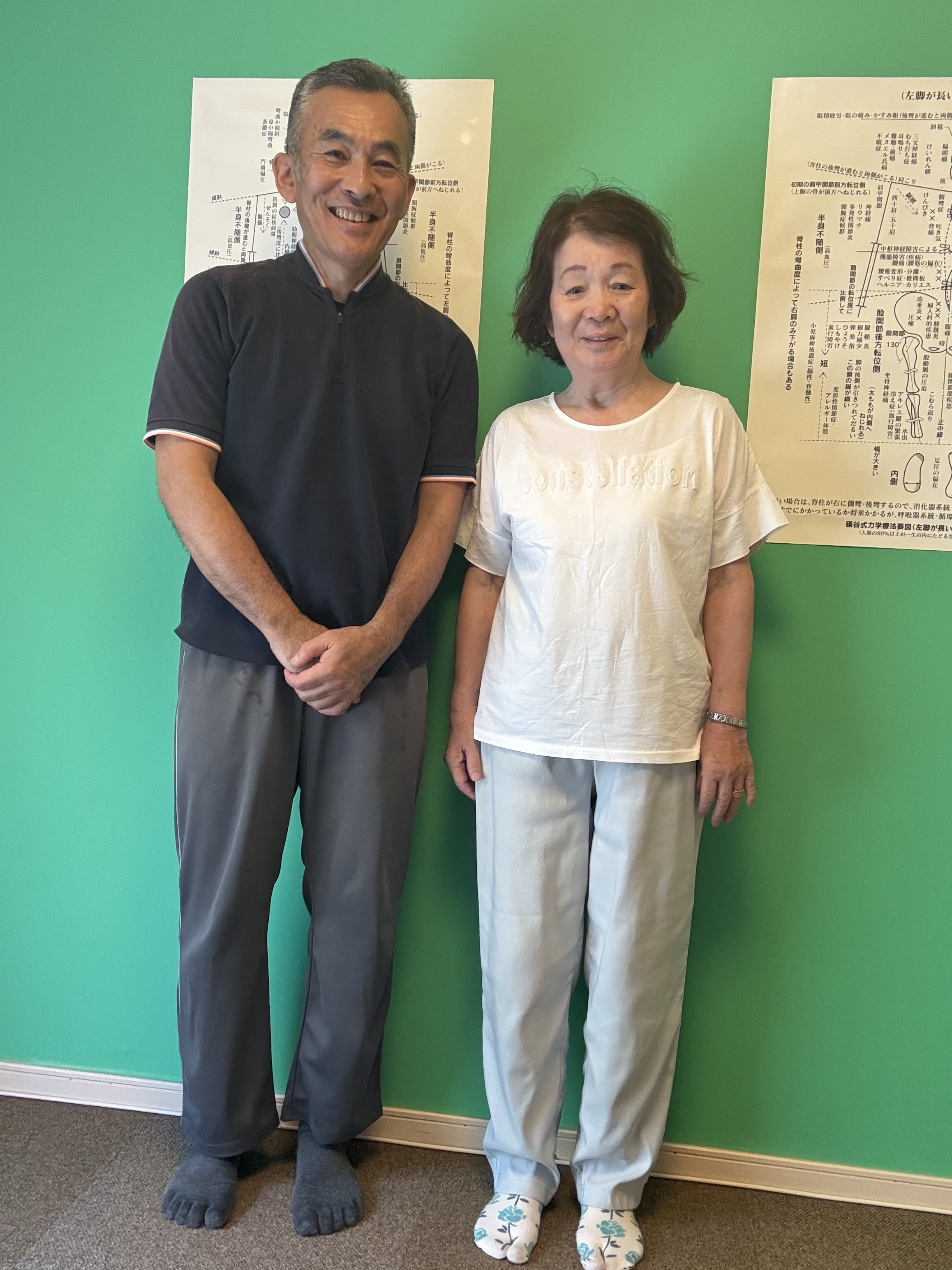 はじめてご来所された時は左肩がこぶのように拘縮されていらっしゃいましたよね。お仕事とご家庭の両輪を目いっぱいこなしてこられたからお体が悲鳴を上げているようでした。痛みはなくなりましたが、お若い時から長年続けられた剣道の影響だと思いますが、どうしても右骨盤が前に出やすい(剣道では常に右脚が前になるため)ので、体重が左脚に乗りやすいので気を付けてお過ごしくださいね。でも、ご自分で少々の痛みはコントロールできるというのは最高です。礒谷式力学療法は自分で健康管理ができる仕組みですから大いに活用してくださいね。いつも全力疾走されていますがご自愛くださいね。