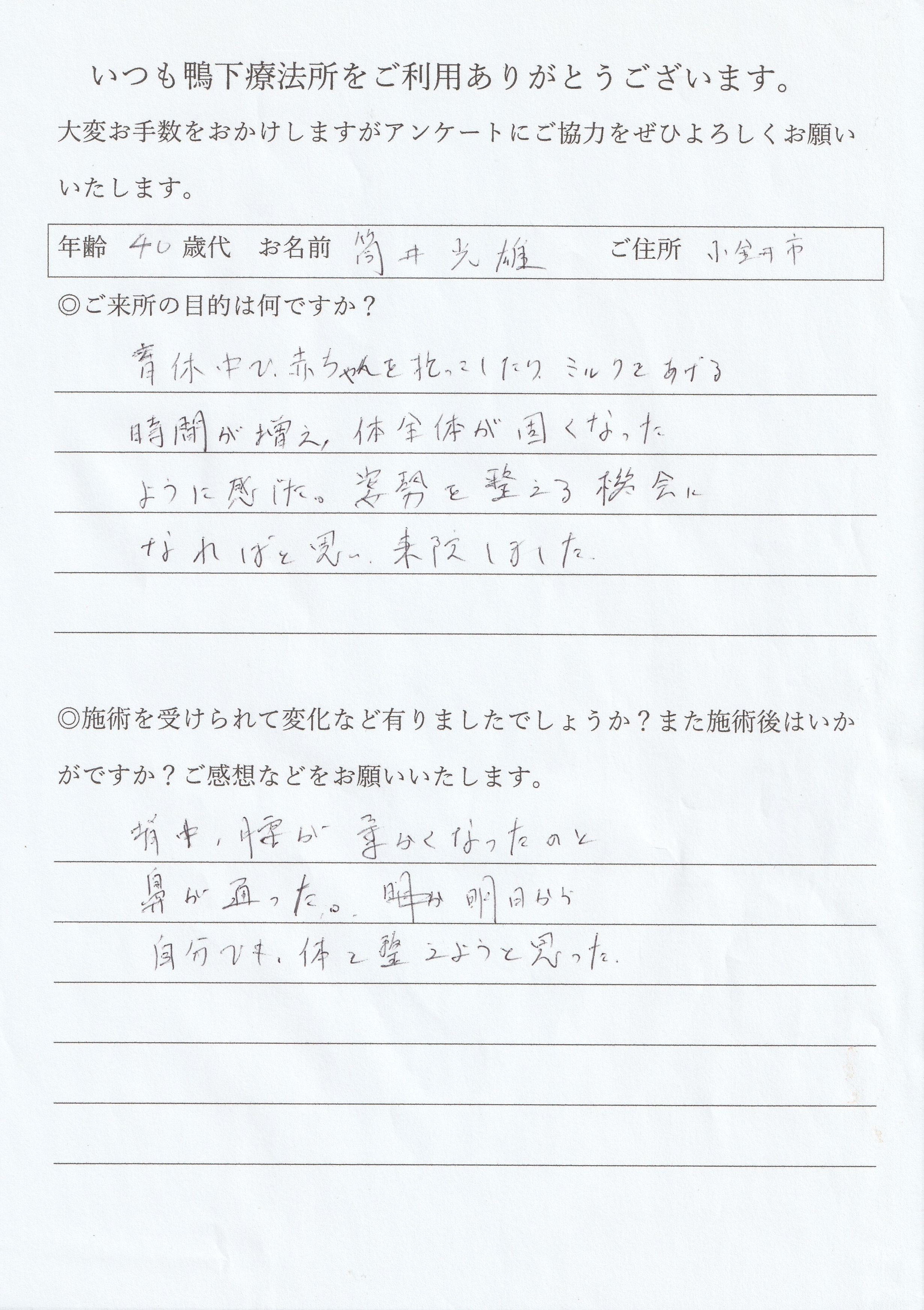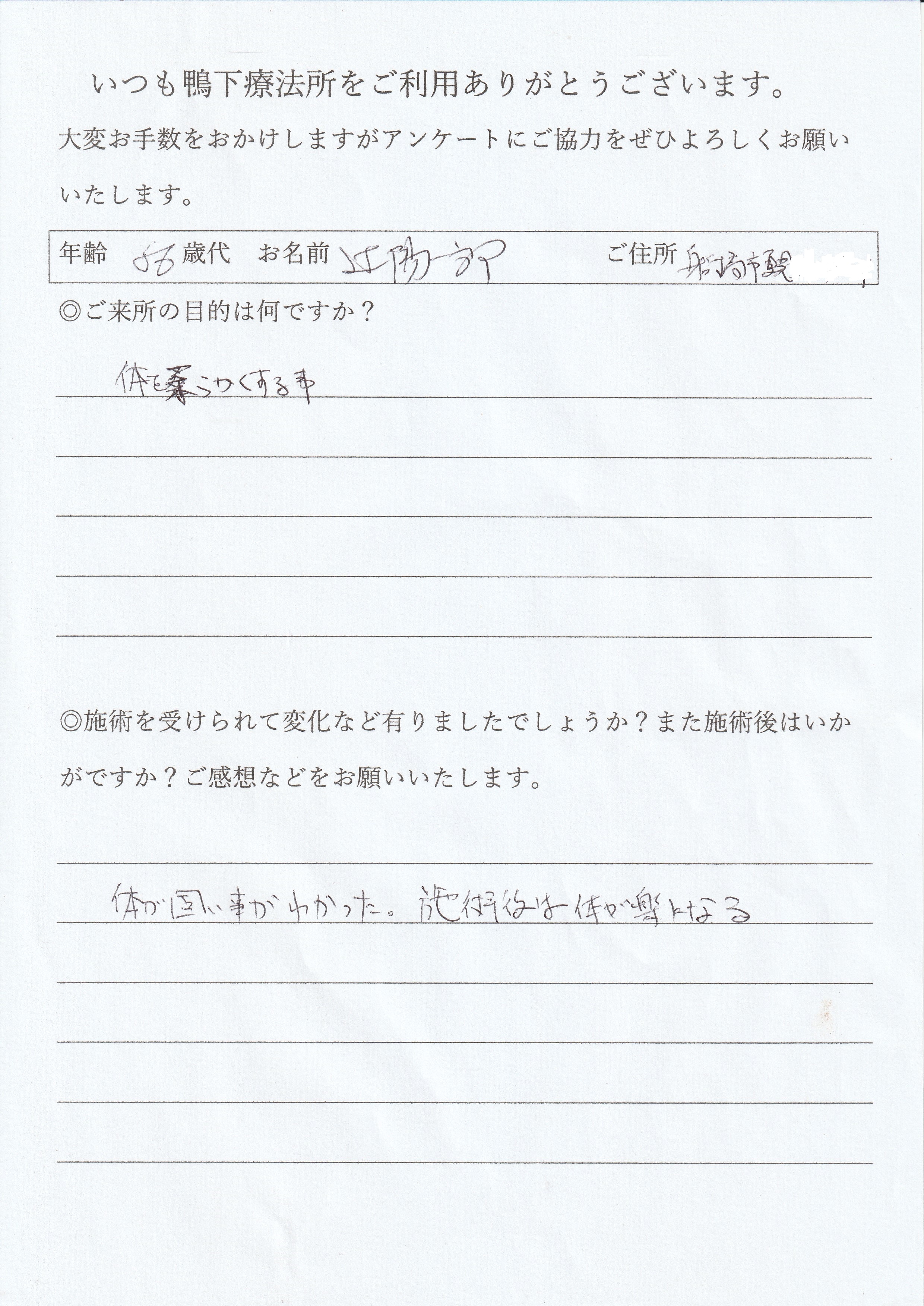 当所の施術を受けられていかがでしたか?
